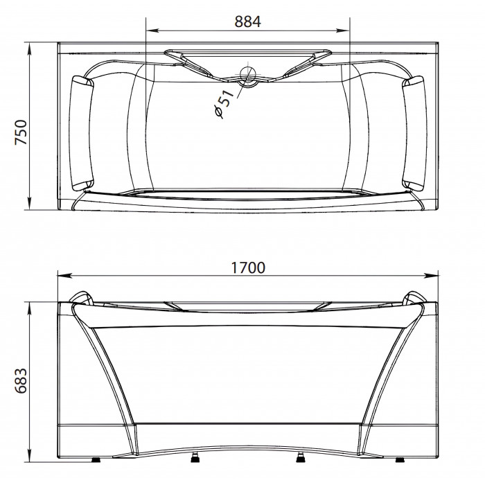 Модификация ванны позволяет установить ее как с левой, так и с правой стороны.