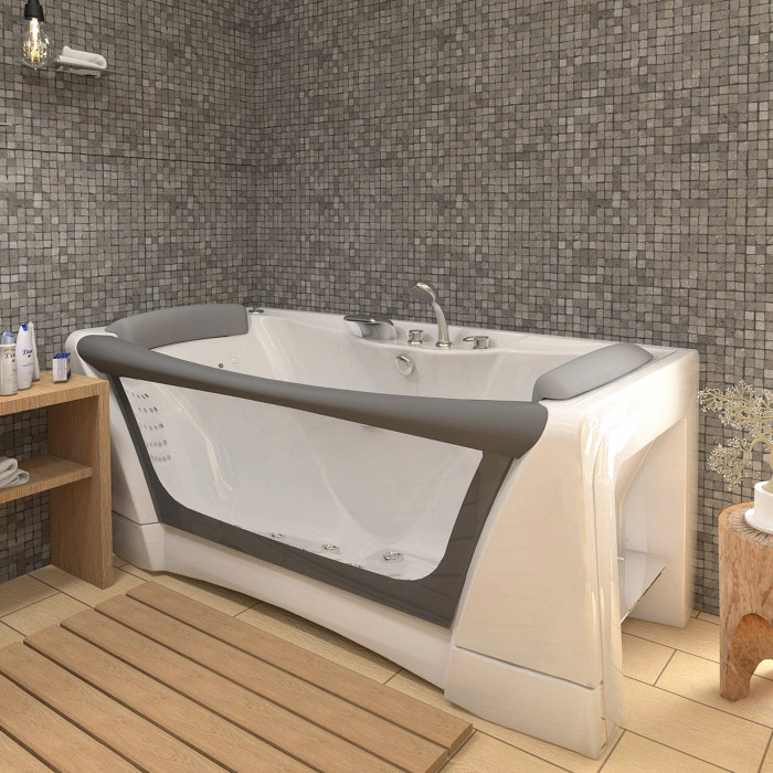 Особенностью данной модели является слив посередине купели, что позволяет максимально комфортно принимать ванну. Большая глубина ванны обеспечивает полное погружение в теплую воду и уменьшает количество брызг.
