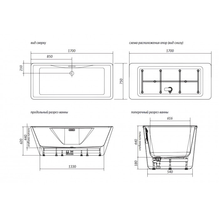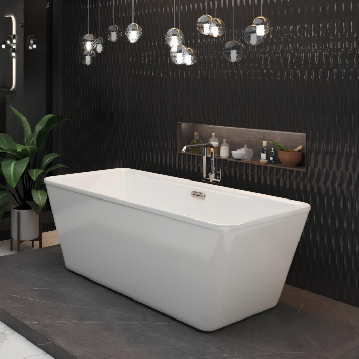 Ванна имеет прямоугольную форму и изготовлена из 100% литьевого акрила, что гарантирует прочность и долговечность.