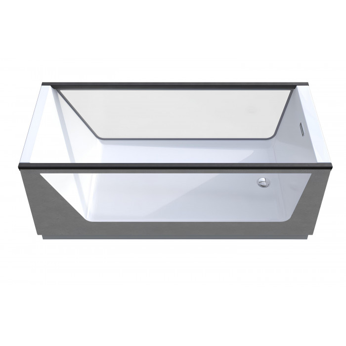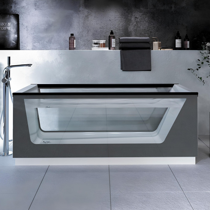 Дизайн ванны выполнен в лаконичном стиле, что делает ее особенно привлекательной. Матовое серое стекло, из которого изготовлена стенка ванны, придает ей современный и стильный вид. Это не только делает внешний облик ванны более запоминающимся, но и полностью избавляет его от громоздкости.