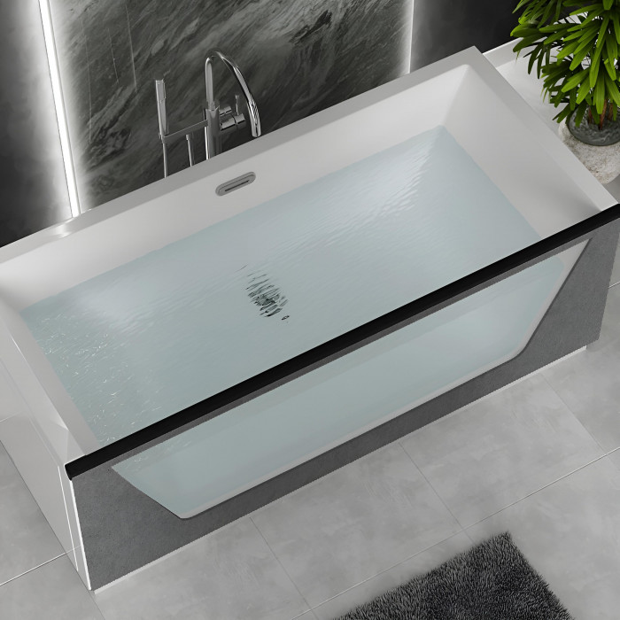 Дизайн ванны выполнен в лаконичном стиле, что делает ее особенно привлекательной. Матовое серое стекло, из которого изготовлена стенка ванны, придает ей современный и стильный вид. Это не только делает внешний облик ванны более запоминающимся, но и полностью избавляет его от громоздкости.