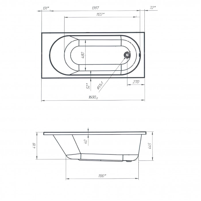 Усиленная конструкция ванны гарантирует безопасность при принятии водных процедур. Материал акрил обеспечивает долговечность и качество ванны.