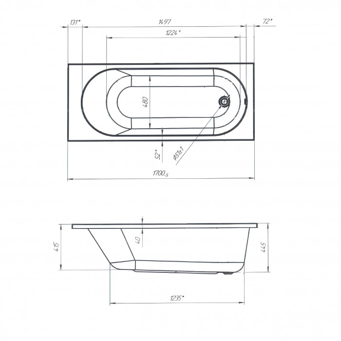 Ванна акриловая Marka One ATLAS 1700x700 Прямоугольная белая 01атл1770