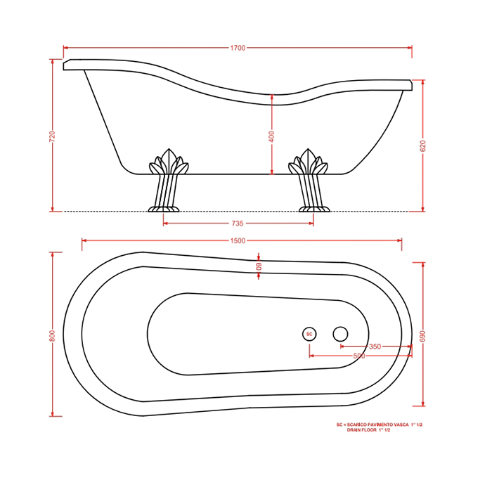 Ванна акриловая на лапах 170х80 см Artceram HERMITAGE HEW001 71 cr Белый