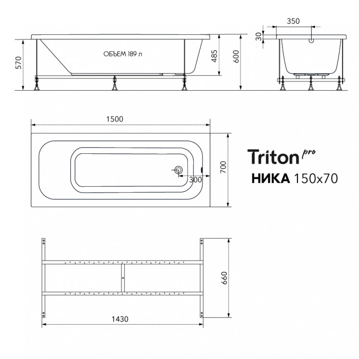 Ванна акриловая Ника 150х70 Triton pro Щ0000064734