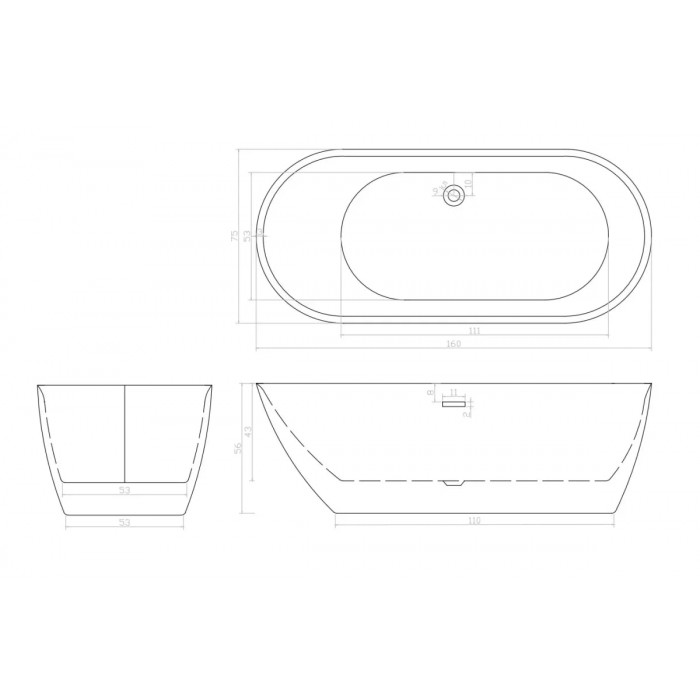 Ванна акриловая отдельностоящая 160х75 Cerutti SPA COMO160 CT9901
