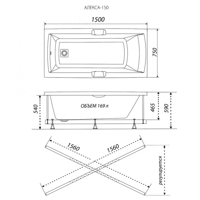 Ванна обрезанная Алекса 150 Triton Щ0000049162 Прямоугольная Универсальная Россия 10 лет