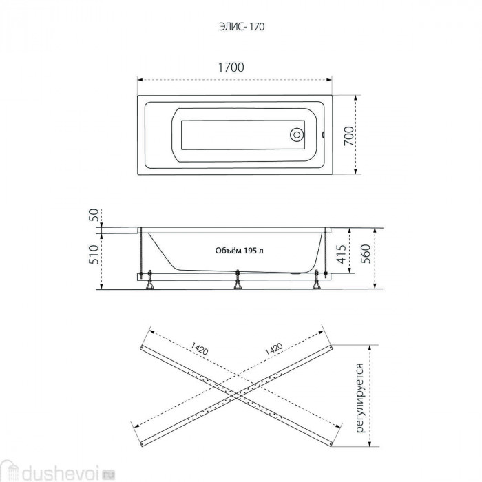 Ванна акриловая Triton Элис 170 Щ0000066028 + Каркас усиленный Щ0000041797
