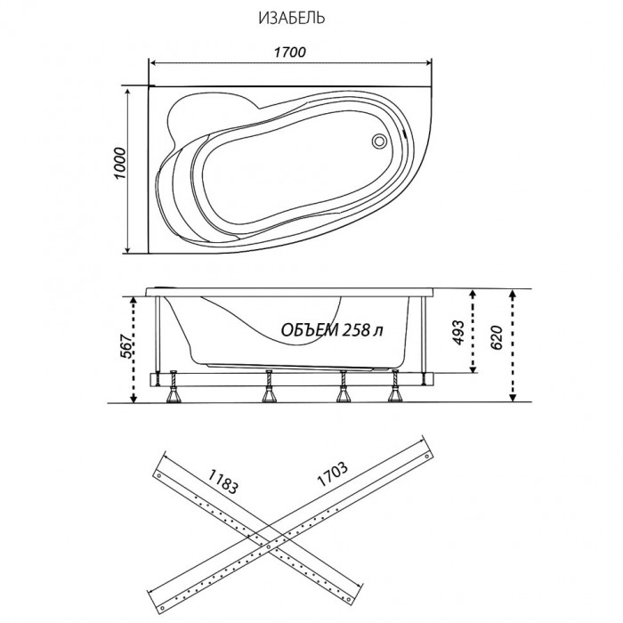 Ванна обрезанная Изабель 170-правая Triton Щ0000048747