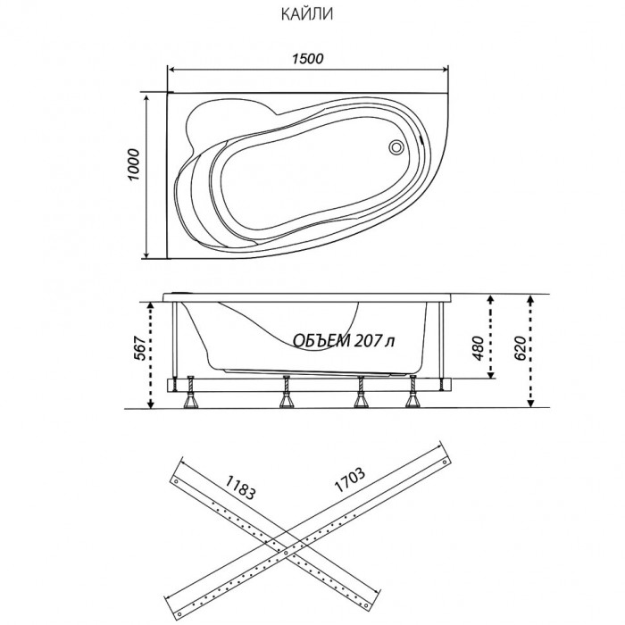 Ванна обрезанная Кайли 150-правая Triton Щ0000048091 Ассиметричная Правая Россия 10 лет