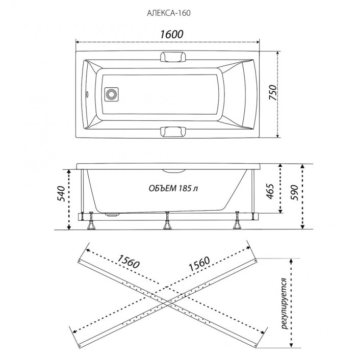 Ванна Алекса 160 Triton Щ0000049499 Прямоугольная Универсальная Россия 10 лет