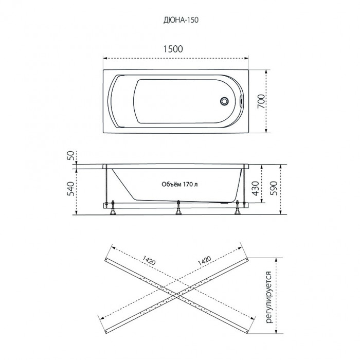 Ванна Дюна-150 1ACreal Щ0000046661 Прямоугольная Универсальная Россия 10 лет