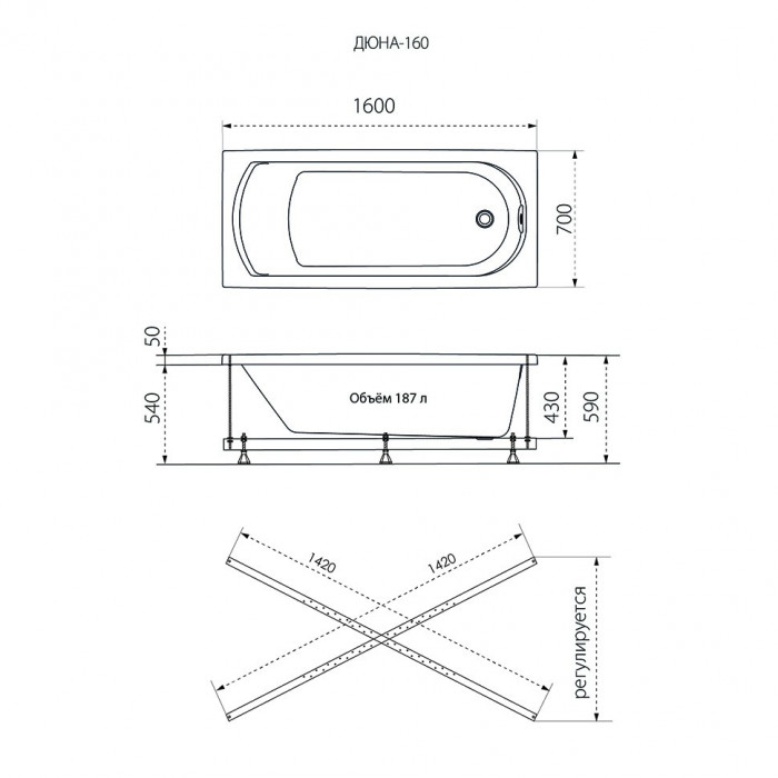 Ванна Дюна-160 1ACreal Щ0000046662 Прямоугольная Универсальная Россия 10 лет