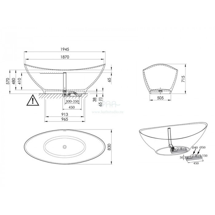 Ванна из натурального камня PAA Felice VAFES/00 194,5x83 см, отдельностоящая, белый матовый