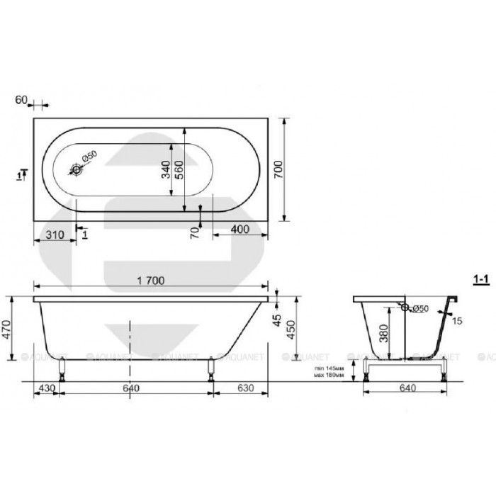 Ванна из искусственного камня Aquanet Lotos Stone 170x70 AQ-00348172