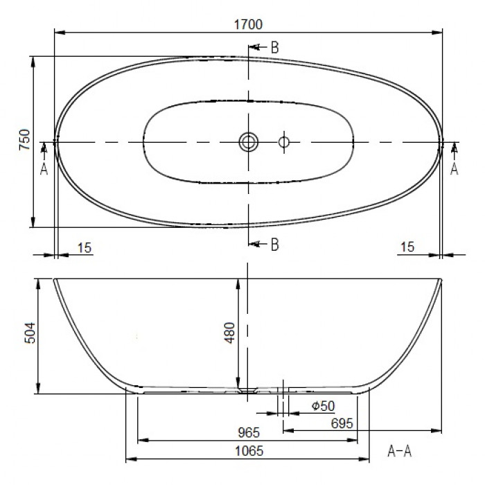 Размер - 1700 x 750 mm