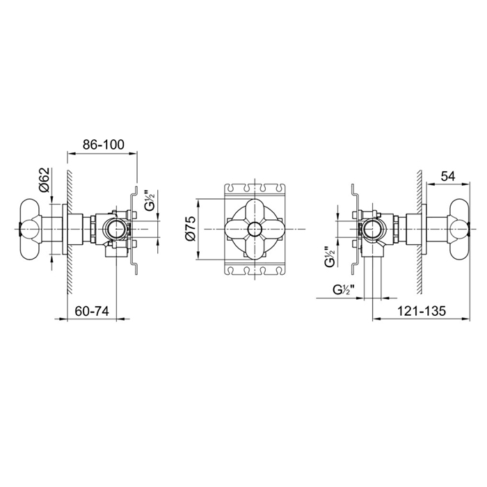 Встраиваемая часть Fantini I Balocchi 19 00 D276A Хром Fantini Внутренняя часть запорного вентиля, переключатель на 2 источника, 1/2''