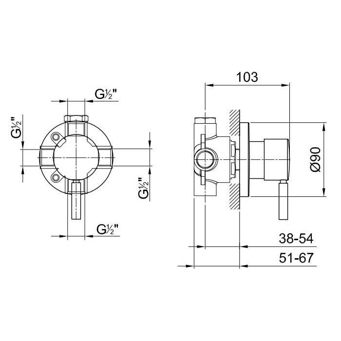 Встраиваемая часть Fantini Nostromo 19 00 1678A Нержавейка Fantini Внутренняя часть смесителя для душа, переключатель на 2 источника, с Eco System, 1/2''